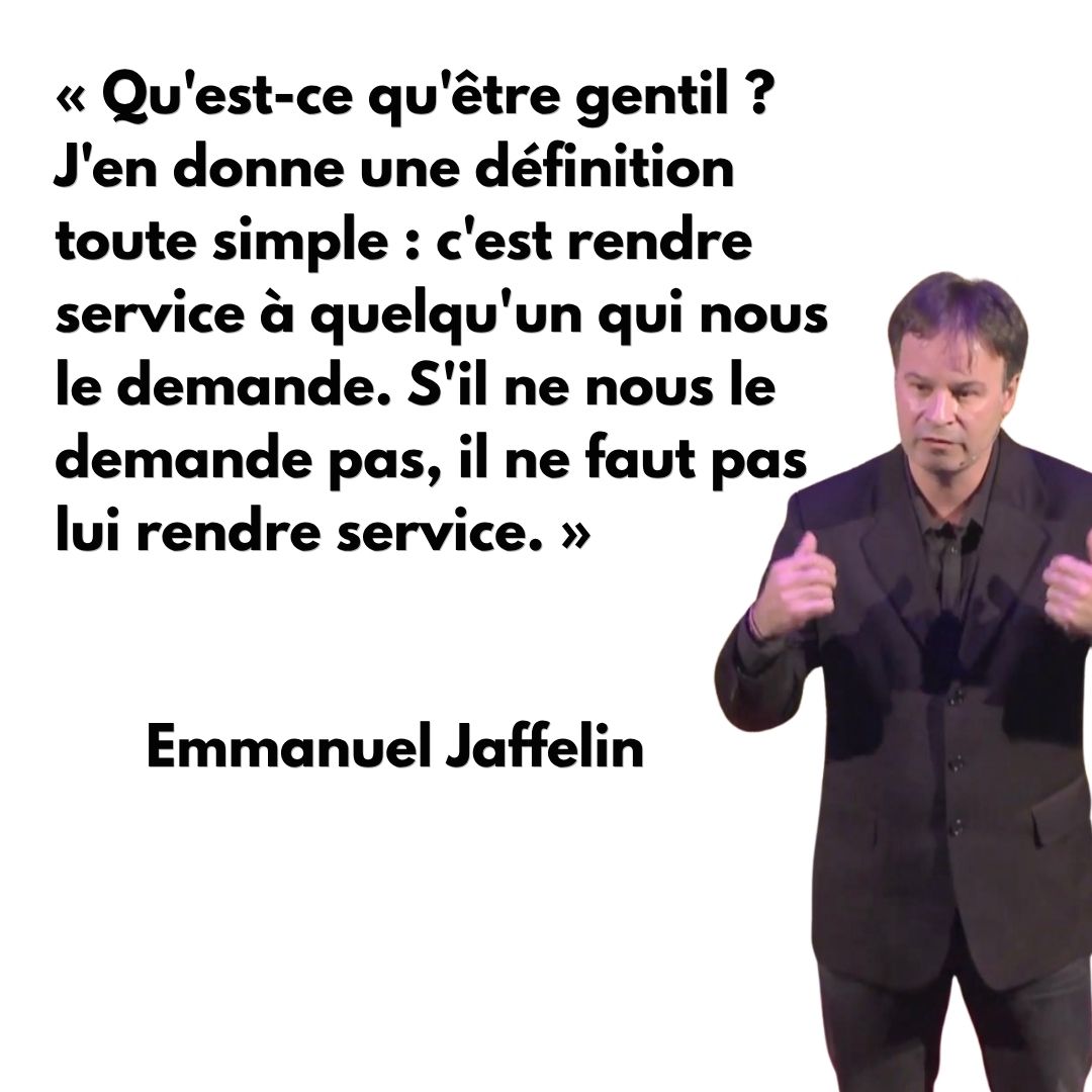Aujourd’hui, comment définir la gentillesse ? Pour Jaffelin, c’est très simple : c’est rendre service à quelqu’un qui nous le demande.